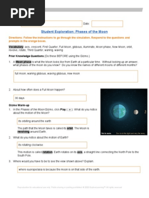 Student Exploration Phases Of The Moon Pdf Planets Of The Solar System Moon